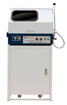 在金相试样制备过程中,试样材料的切割是试样制备的首道重要工序。Q-4A型切割机适用于一般金相和岩相材料。为保证能在绝对安全状态下切取试样,本机采用全封闭双罩壳结构和快速夹紧装置,并有冷却水箱,可使用配制好的冷却液作循环使用。为延长该设备的使用寿命和操作维护保养等方便,该机的罩壳、砂轮轴套、钳口和工作台面等主要零部件均采用不锈钢材料制成,是切割试样的极佳设备。